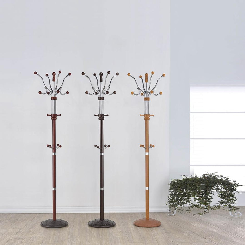 The Hubert Coat Rack brings style and functionality to your hall or living room with this compact piece. Features wooden post with hanging hooks at its top and middle which is complemented by its sturdy base. Make the most of a compact space by tucking this coat rack into your favorite corner.