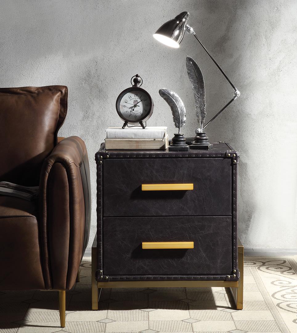 Keegan Night Table, Antique Ebony Top Grain Leather