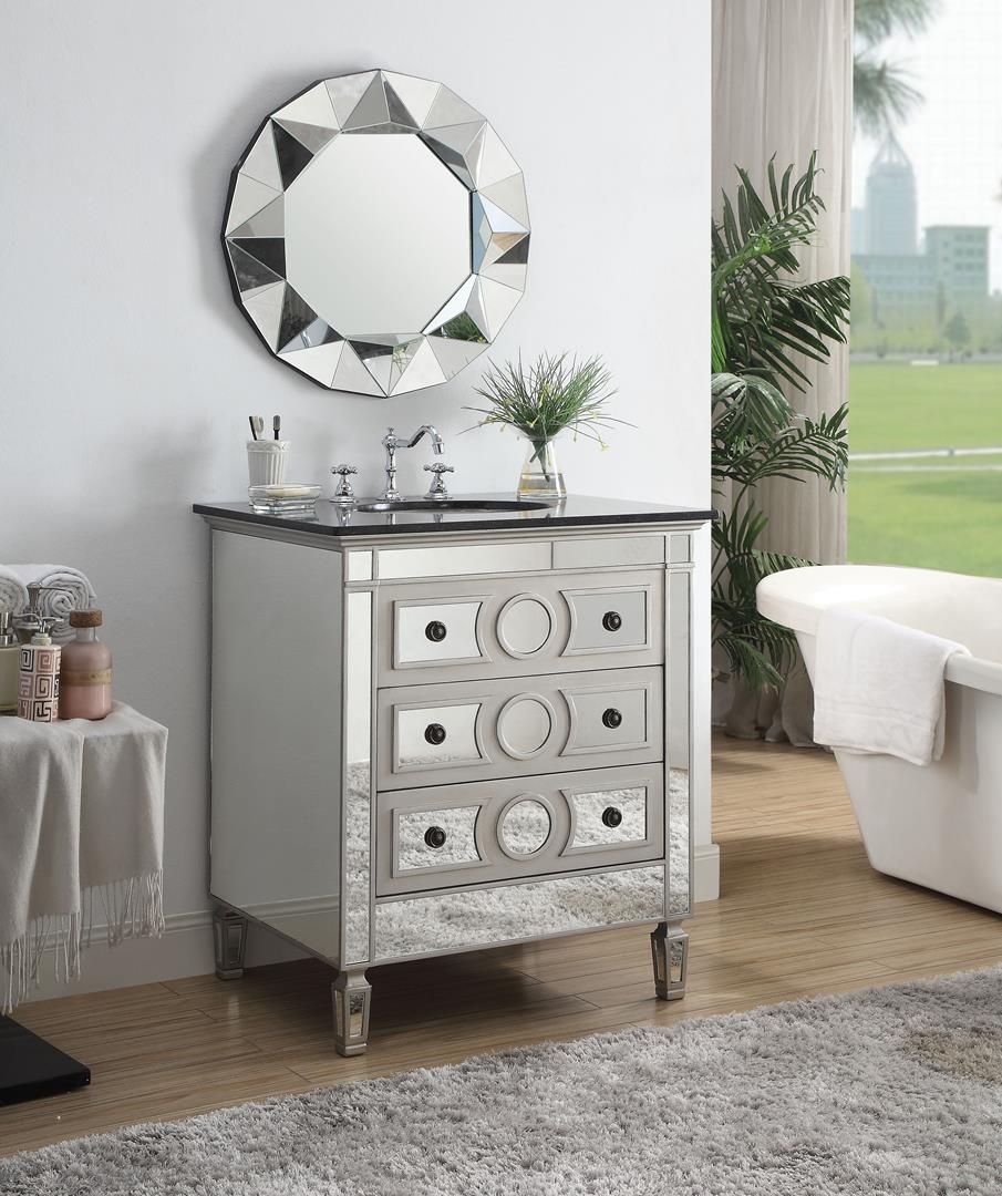 Gaviya Sink Cabinet, Black Marble & Mirrrored
