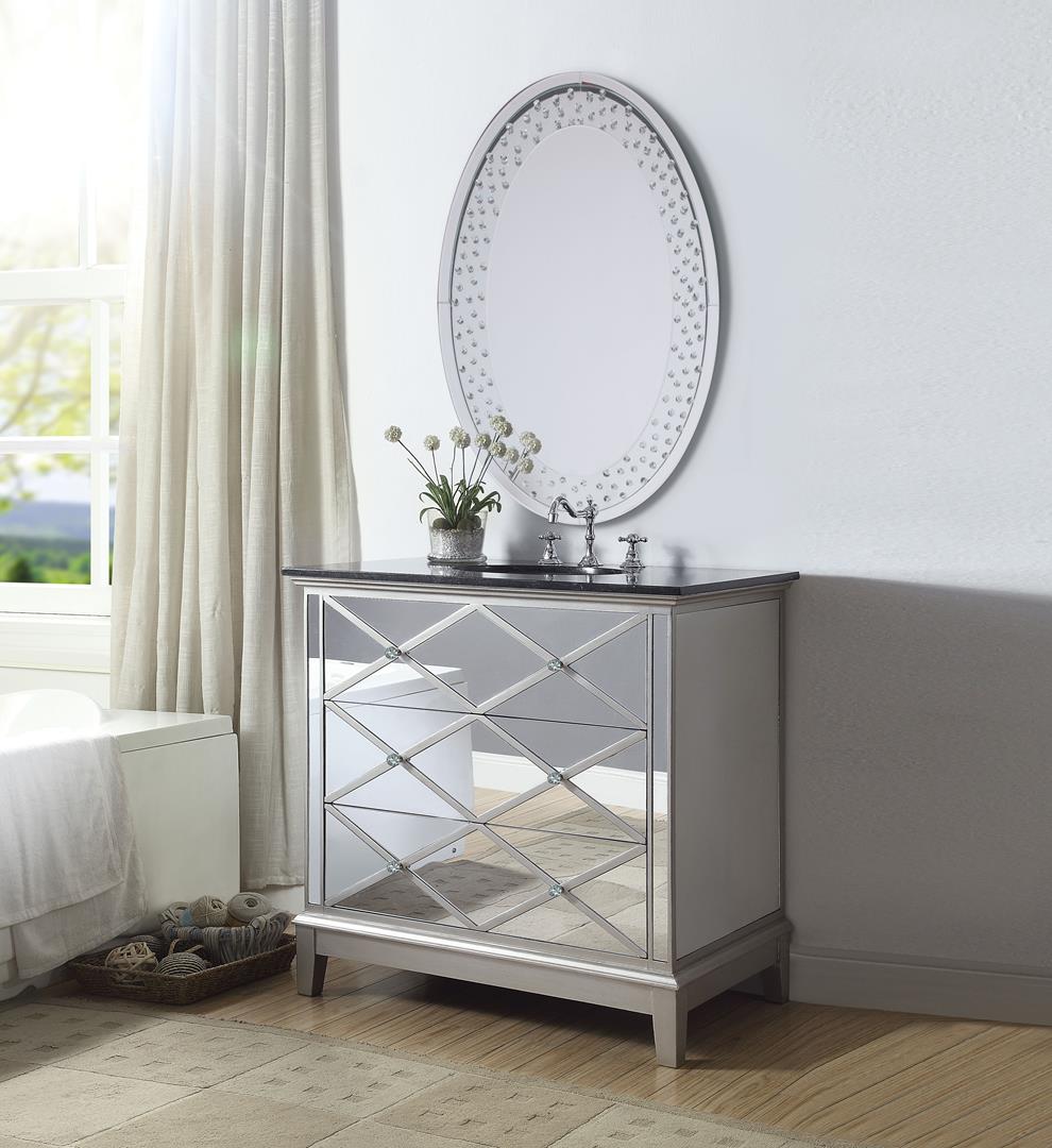 Dinia Sink Cabinet, Black Marble & Mirrrored