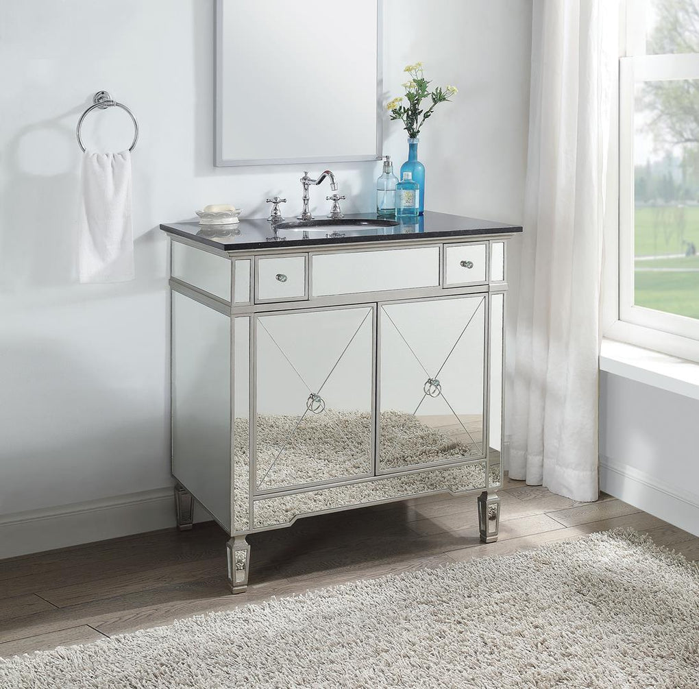 Atrian Sink Cabinet, Black Marble & Mirrrored