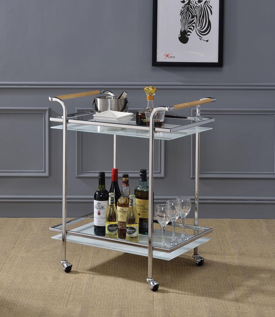 The Munro serving cart is perfect for showing off your personality. With features like a chrome finished metal frame and frosted glass top and bottom as the ideal place for your dishes and dining accessories. Roll it anywhere on its soft rubber wheels and prepare to entertain.