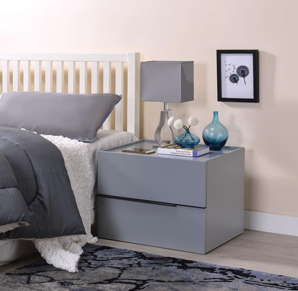 Contemporary at its best with the Corbin gray finish nightstand it can also be used as an end table. With 2 drawers there is ample storage for quick access.