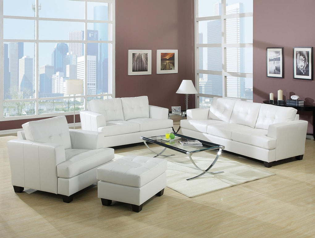 The Platinum Collection brings contemporary style to any living space with clean lines and sophisticated Style. It features expertly crafted tufted bonded leather upholstery, wooden legs, and square arms add a sense of character to the overall look. Available in 4 different colors: Brown, Black, White or Red.