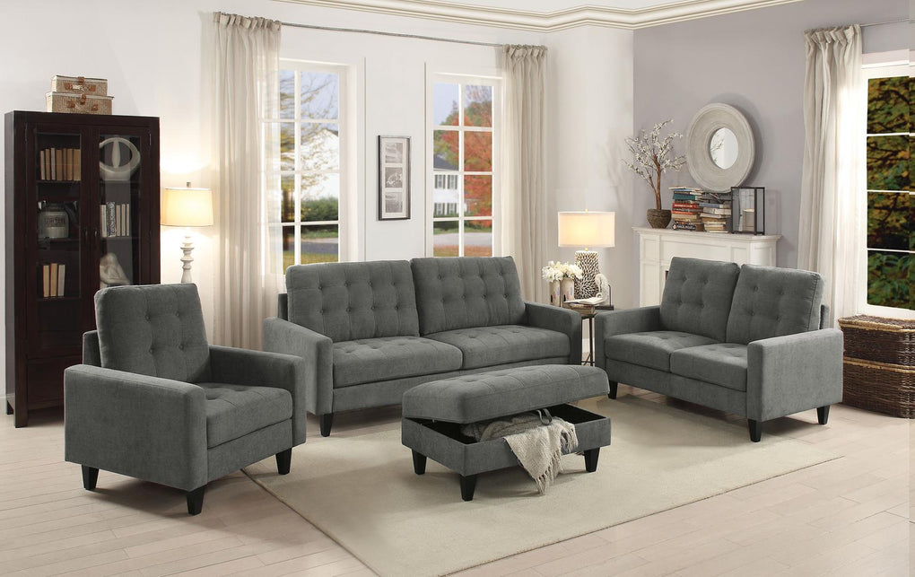 The Nate collection offers different color options to bring wonderful upholstery into your home. Combining the button tufted, sharp and clean modern design, our Nate collection features memory foam and pocket coil for the seat cushion which makes cozy seating ever. Following the modern design, the storage ottoman also provides the best option for every contemporary living room.