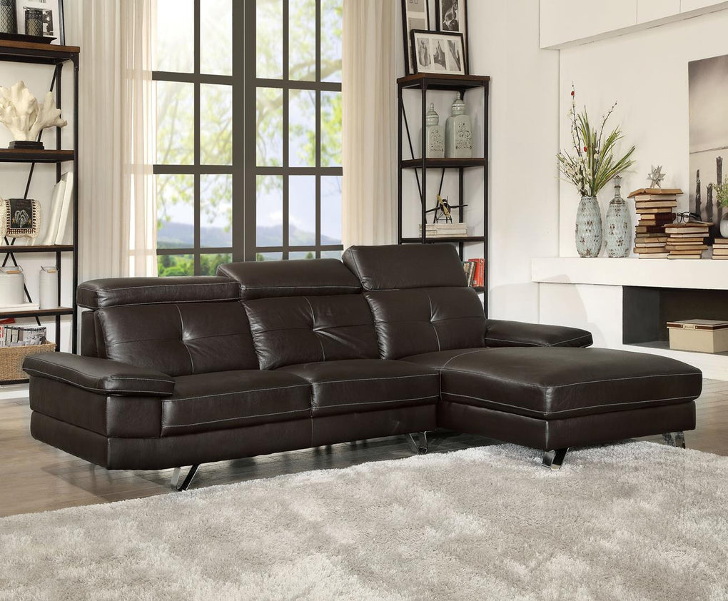 The Aery sectional will be the perfect choice for your home, with plenty of space for guests to sit and relax while the adjustable headrest can quickly transform its stylish looks. Features rich red leather like upholstery, buttonless tufted cushions, and pillow top armrest complete the contemporary look.
