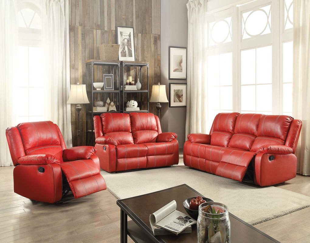 The Zuriel reclining sofa collection is a wonderful choice for any family room, combines luxurious faux leather with the comfort of padded, reclining seating. Comfortable contoured seats, soft to the touch while the reclining footrests offer full leg support. The recliner chair includes rocker function that allows you to rock gently up and down for ultimate comfort.