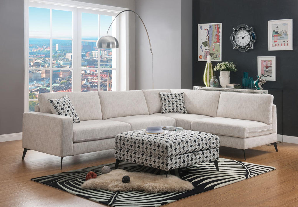 Unwinding always sounds appealing, but It is even more so on our grand Crocosmia sectional. Featuring a soft, completely wood frame, the generously-scaled sofa/chaise design welcomes small groups or solo loungers who need their space. Also this storage ottoman can be used as a footrest, coffee table or extra seating in a pinch. This sofa set will be a comfortable and stylish addition to any living room.
