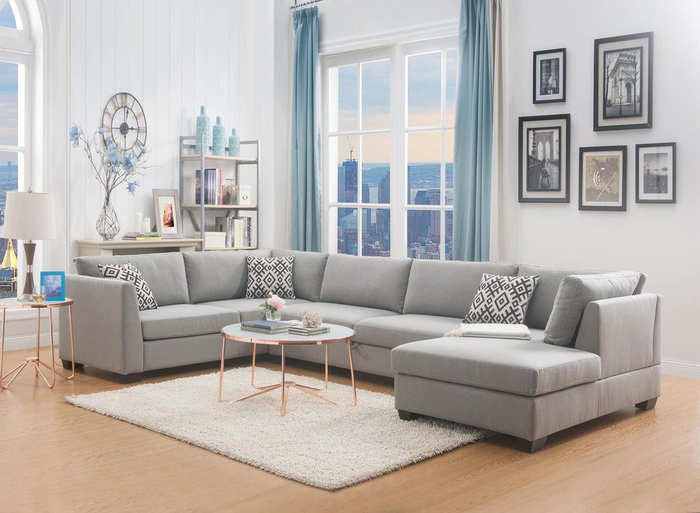 Sink into the plush living sectional and your lazy days will thank you. This cozy sofa has throw pillows and linen that is making it perfect for everyday use. Its contemporary design will render any room elegant, and with the option of detach seating, you can rearrange to your whim! Get ready to plop down and rest away.