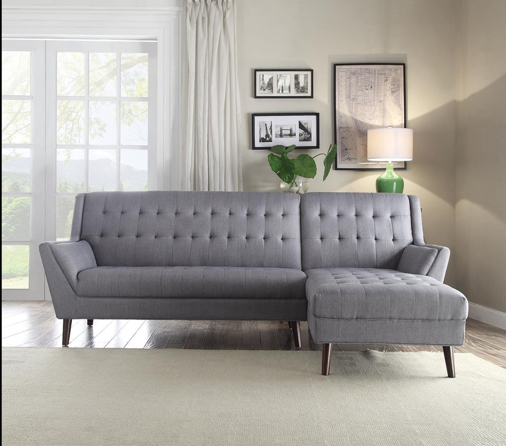 With this contemporary inspirations, this elegant collection features a "L" sectional sofa, right facing chaise and wood-like tapered legs. With the Buttonless stitching details, tufted accents makes this one like a showpiece in your living room.