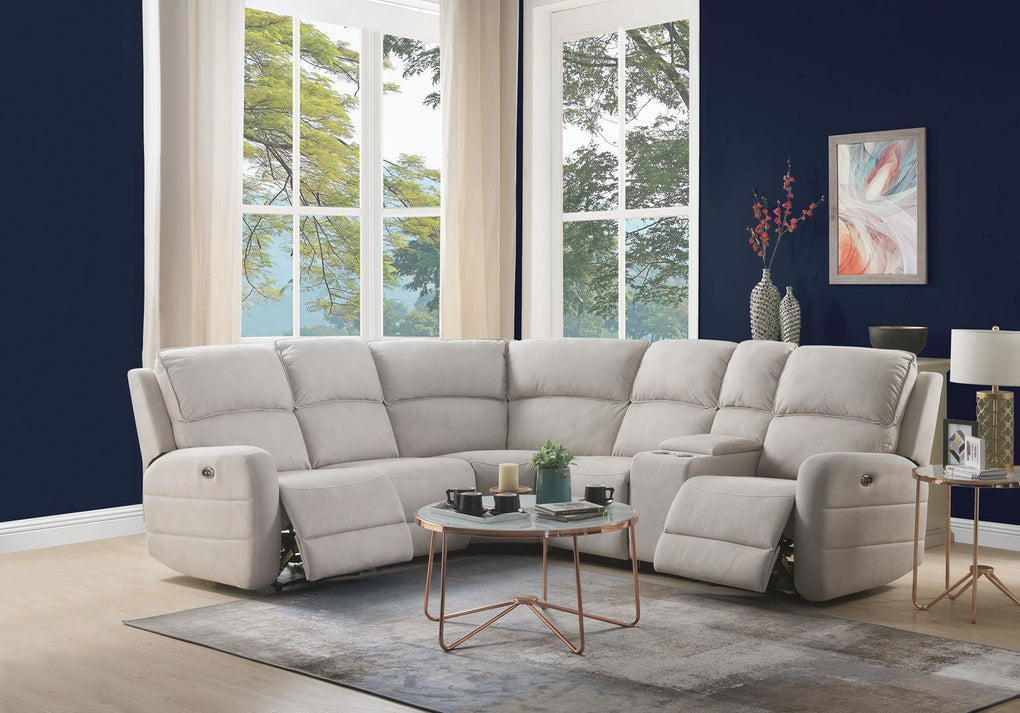 Olwen Sectional Sofa (Power Motion & USB), Cream Nubuck