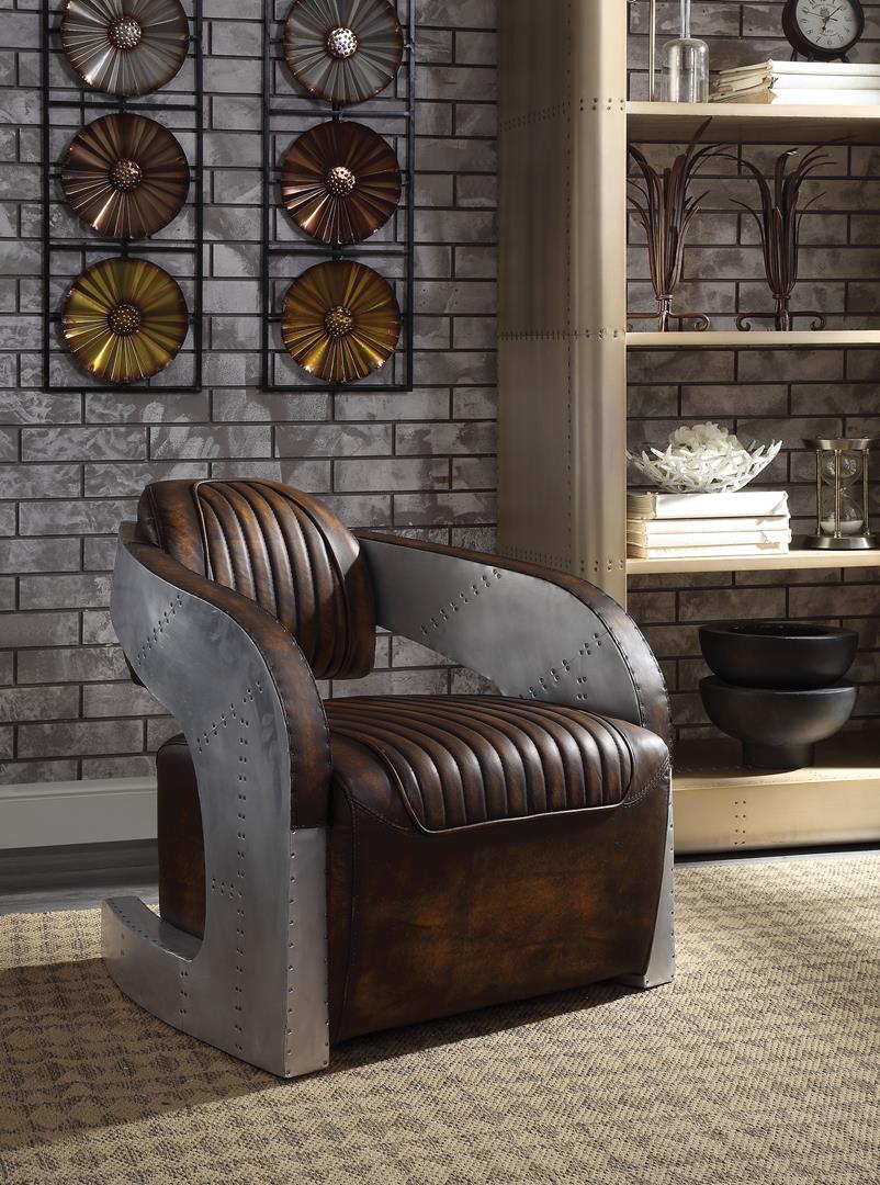 This is an incredible design with curved lines, combining with aluminum and leather together to bring you a vintage sensation in the living room. Characterized by shelter arms and retro brown top grain leather, our Brancaster is absolutely an eye-catching decoration in your home. Modern and comfortable is your best choice. It will not be monotonous in your living room.
