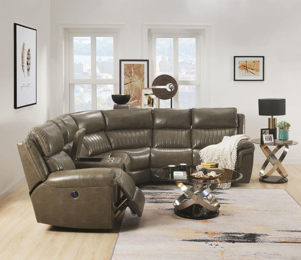 Lonna Sectional Sofa (Power Motion), Taupe Leather-Gel