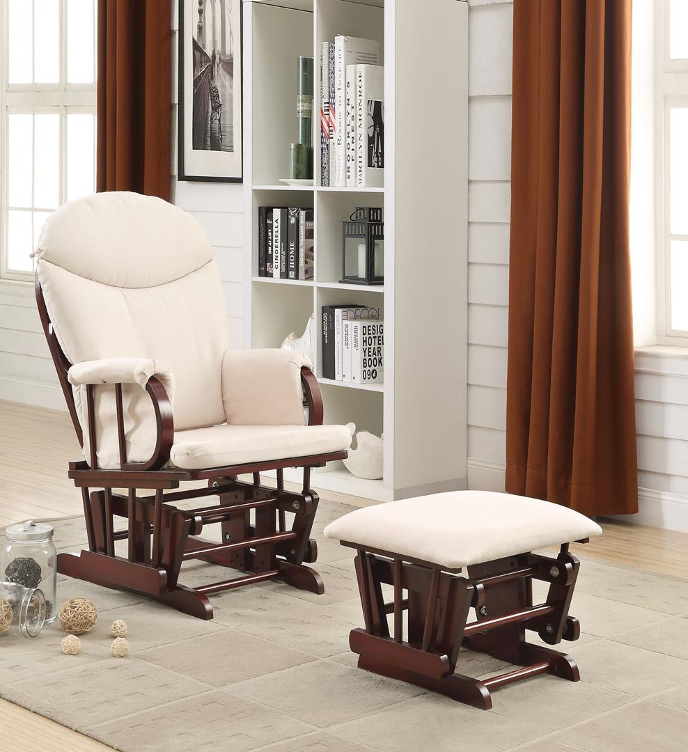 Raul 2Pc Pack Glider Chair & Ottoman, Beige Microfiber & Cherry