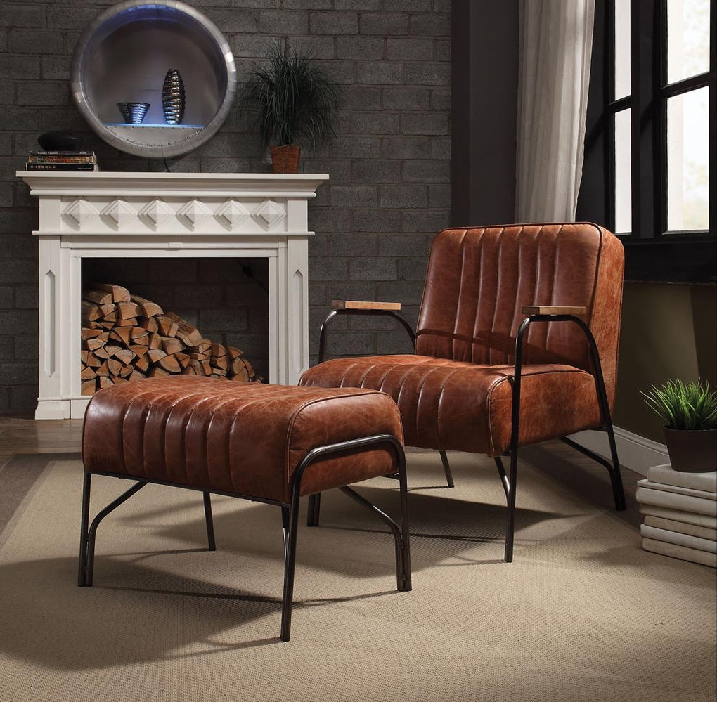 Sarahi 2Pc Pack Chair & Ottoman, Cocoa Top Grain Leather