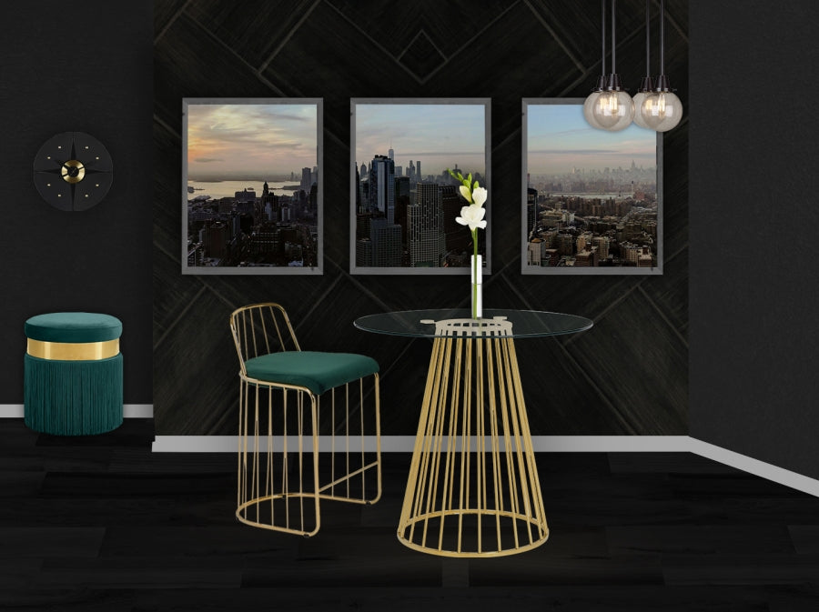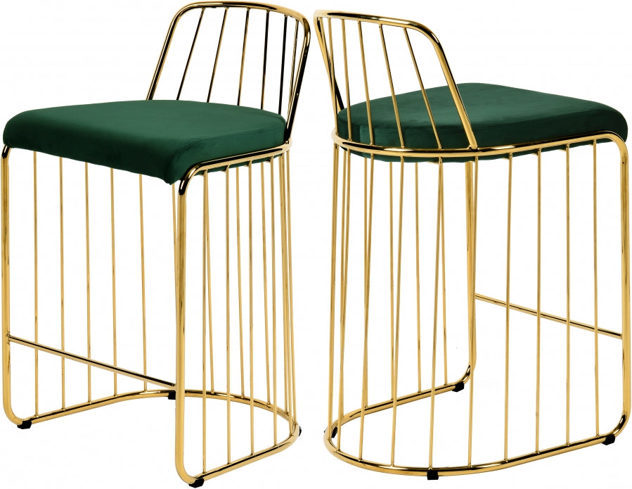 Add dramatic flair to your dining area with this Gio black velvet stool. Featuring a plush black velvet cushion and polished gold metal legs, this counter-height stool is perfect for sitting at your modern breakfast bar while enjoying avocado toast for brunch or tossing back a few drinks with friends after work. Its wired contemporary design makes this chair stand out, ensuring it's the focal point of your dining area.