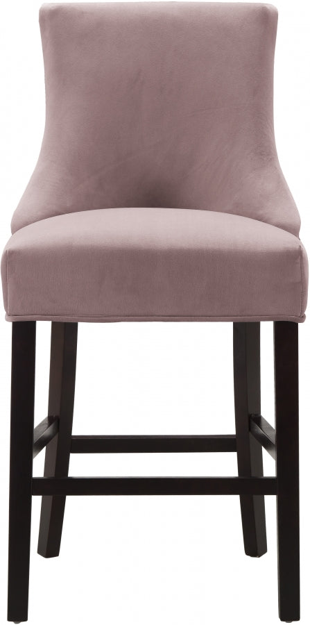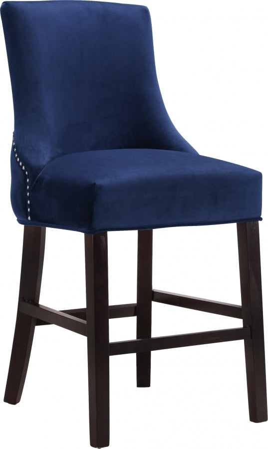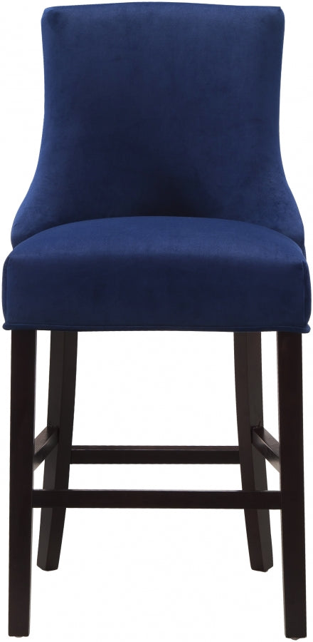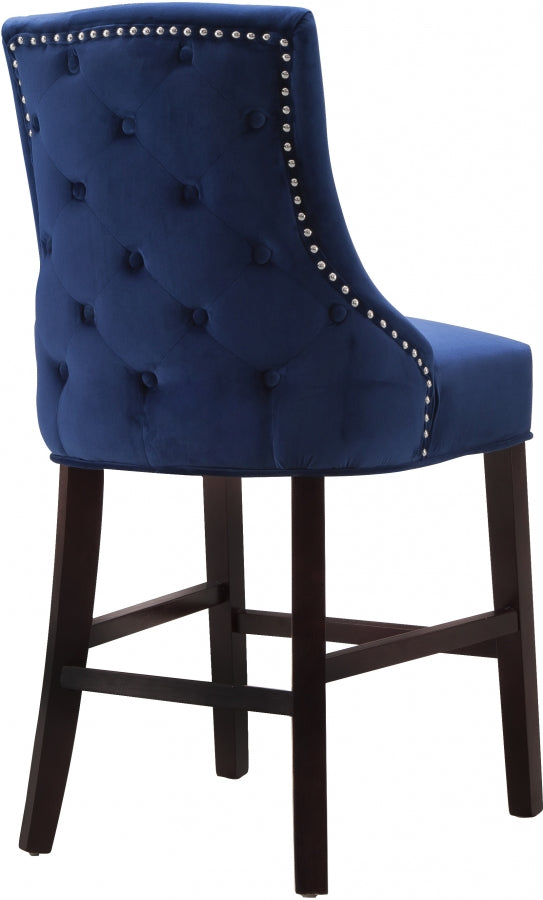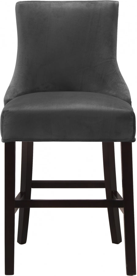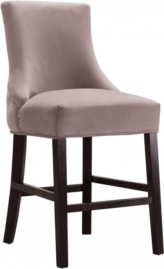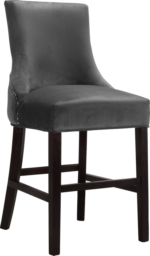 Add this Hannah Black Velvet Stool to your home bar or kitchen counter to seat guests comfortably and in chic fashion. The black velvet upholstery is thick and durable and has a slight sheen for a touch of glam. The back of the seat has deep button tufts for a posh look, while the front features smooth velvet upholstery for sleek comfort. The base is made from wood with an espresso finish and has a foot rail for extra support and comfort as you sit.