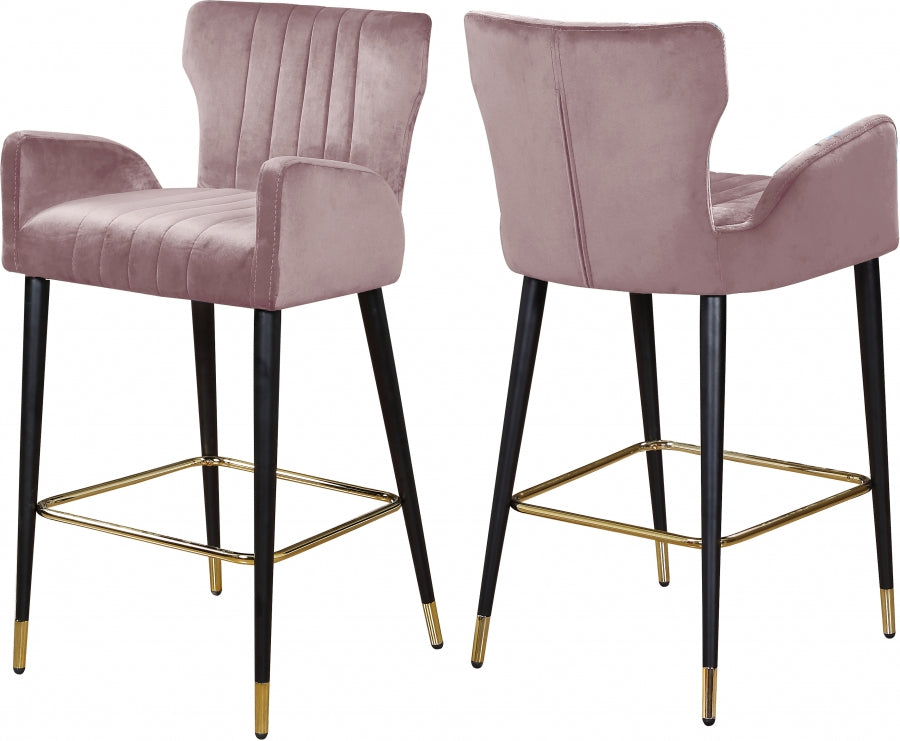 Inject beautiful color into your counter or home bar area with the Luxe Black Velvet Stool. Flared sides and a semi-high back provide support while you sit, so you stay comfortable for the whole meal. Channel tufting on the seat and back adds a dimensional effect while helping the padded cushions keep their loft and form. The metal legs are given a black finish for a contemporary look and goldtone hardware tips for a regal finish.