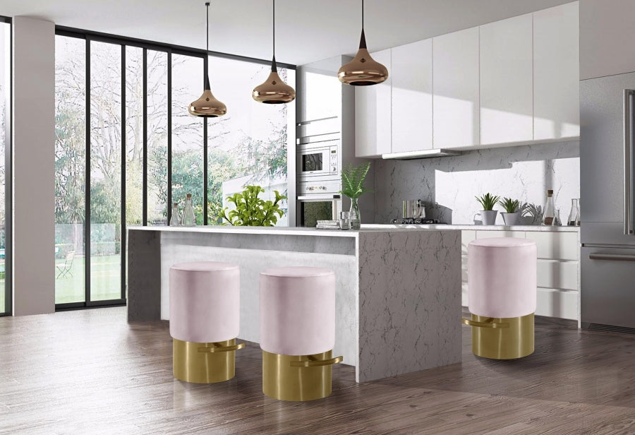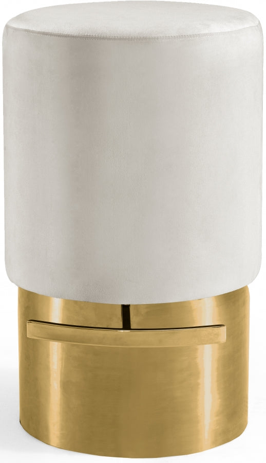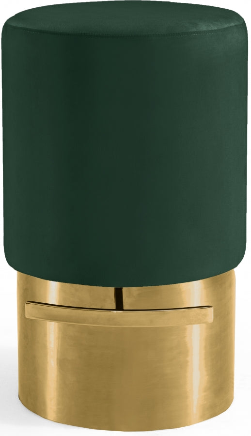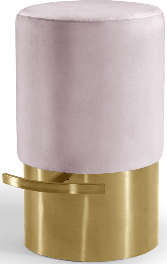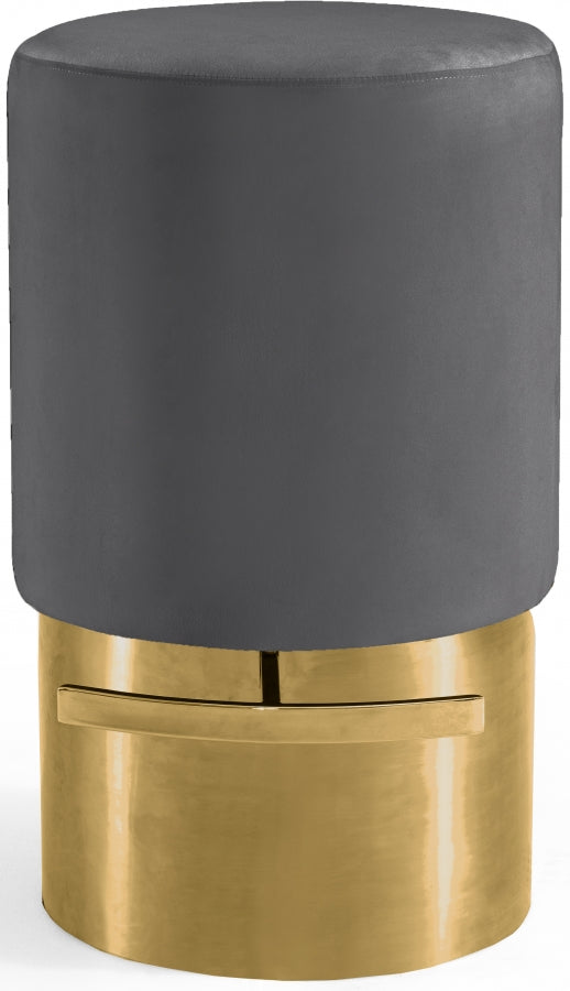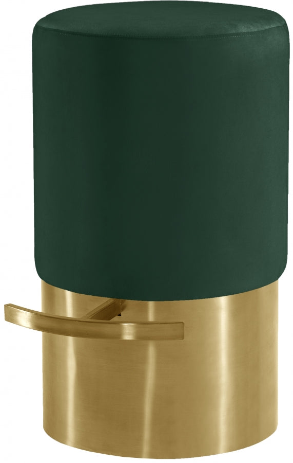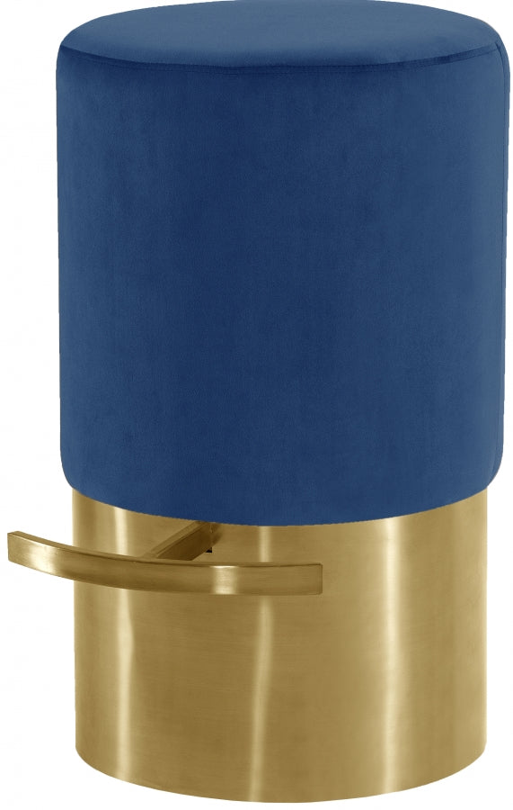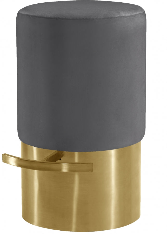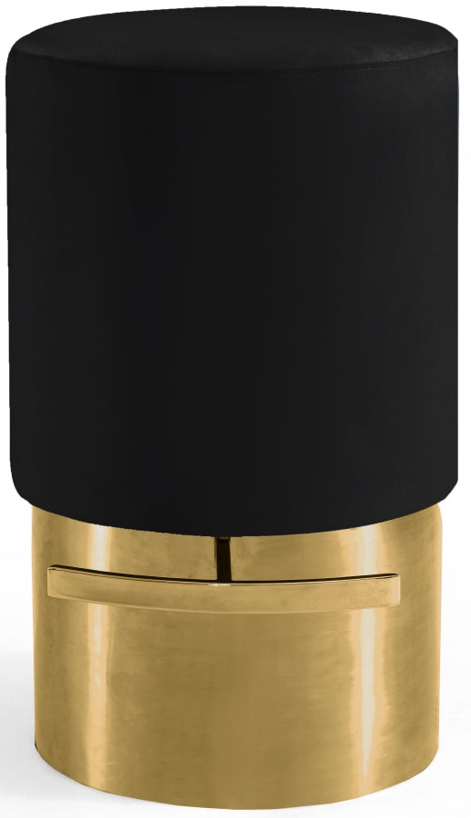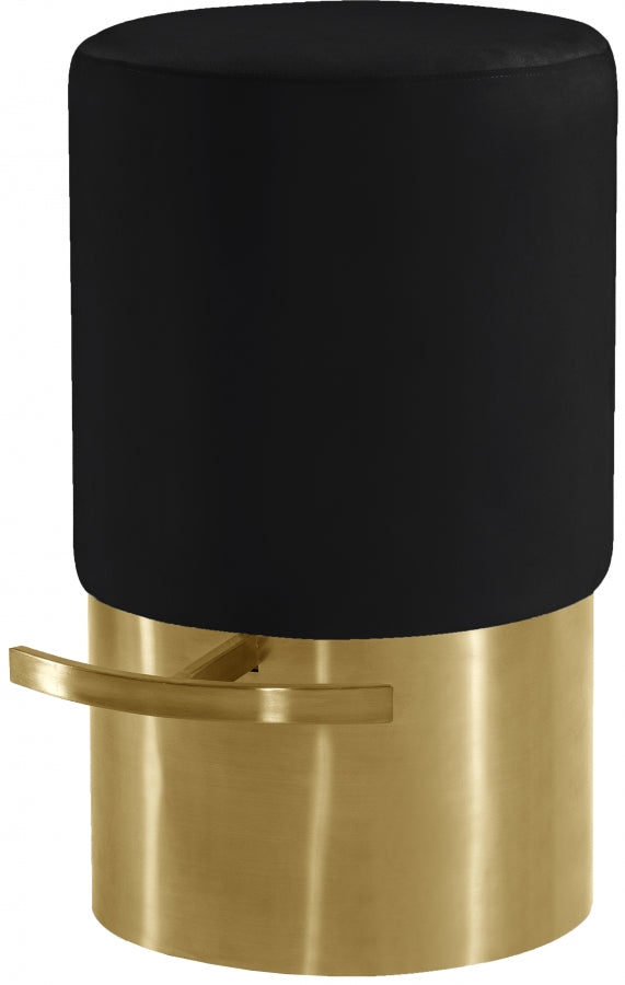 Saunter over to this Liv Black Velvet Stool and get comfortable at the home bar. This uber-contemporary stool looks like one part art, one part utilitarian object for your modern home decor. This gallery-worthy design features svelte black velvet upholstery on its round, backless seat cushion and sides, all resting on a lovely gold base. A metal foot prop gives you a place to rest your feet while you 'order up' your favorite drinks. This upscale stool will quickly become a force to be reckoned with in your homeif not everyone's favorite seat.