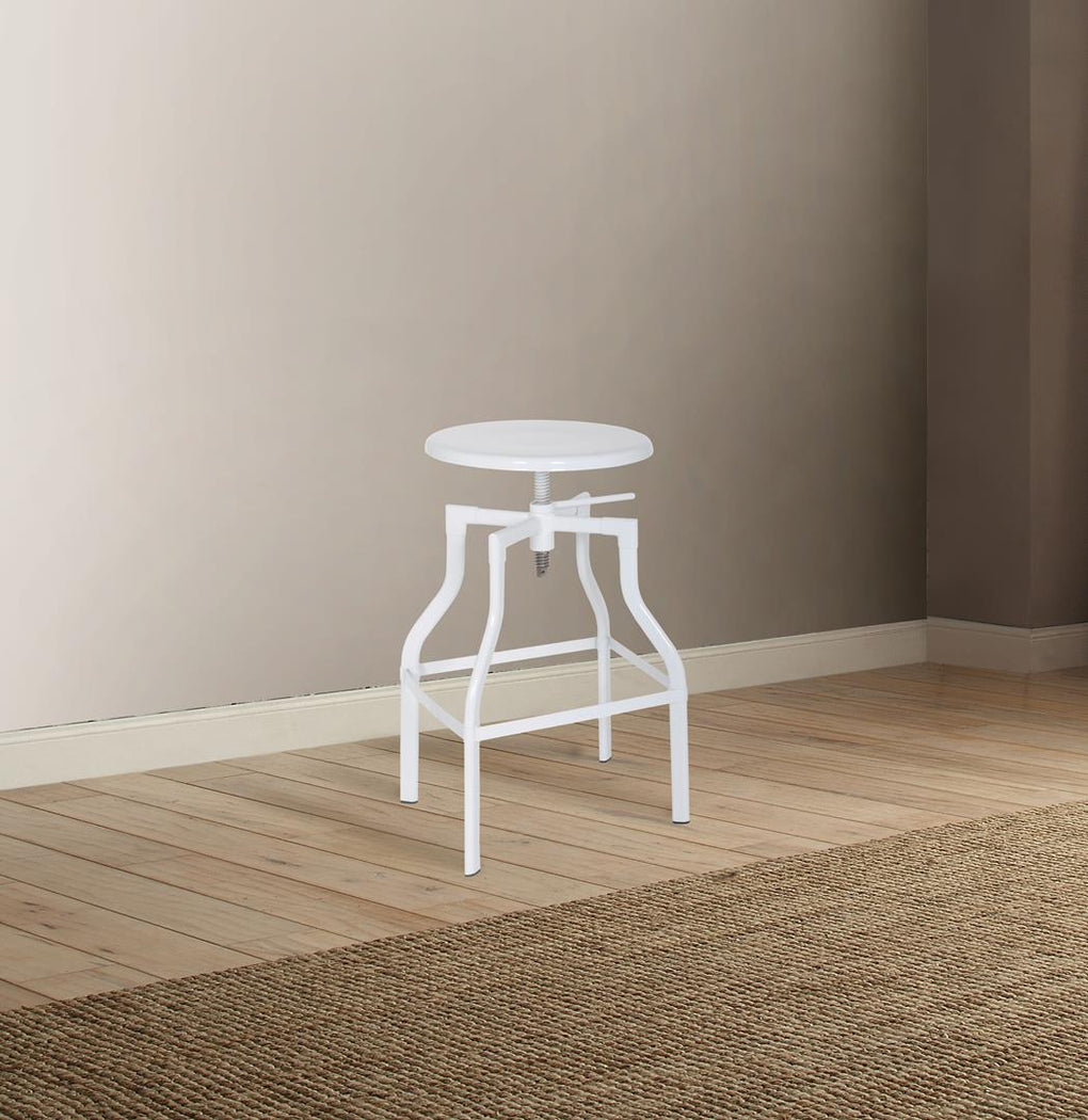 The Xena Stool offer a casual look, versatility and sleek style that will enhance any dining area. Features: swivel seat and footrest supports. Handsomely Crafted in White Finish.