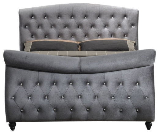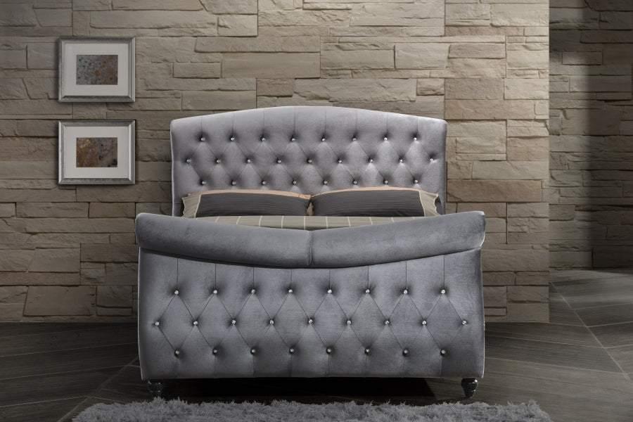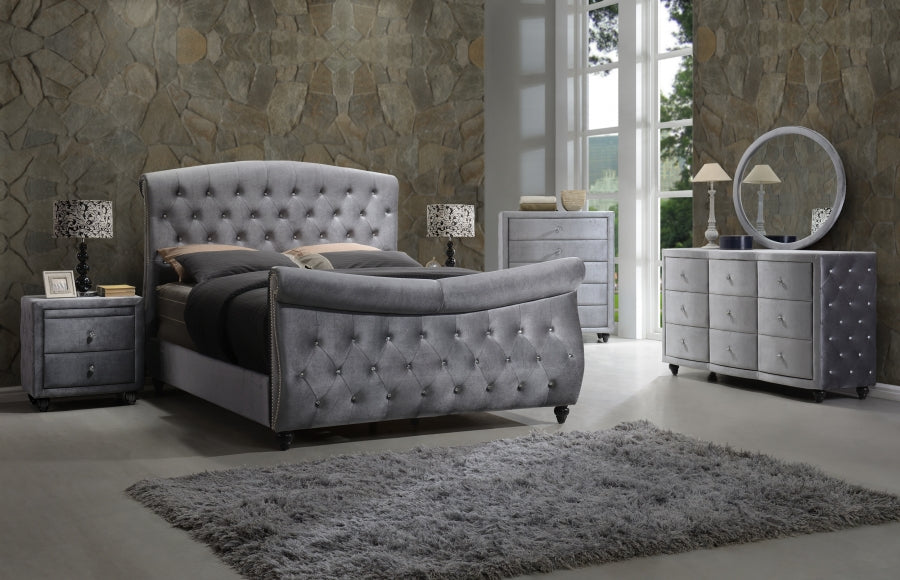 Elegant and eye-catching, the stunning Hudson Bedroom set from Meridian Furniture is the perfect addition to any space. The bed is upholstered in rich Velvet that is complimented by a crystal-tufted design. Available in both a Canopy and Sleigh bed design. The set features velvet-upholstered case goods with crystal handles and tufted details on the sides, which truly makes this the most unique bedroom set around. Strength and beauty is guaranteed with a solid wood frame and legs.