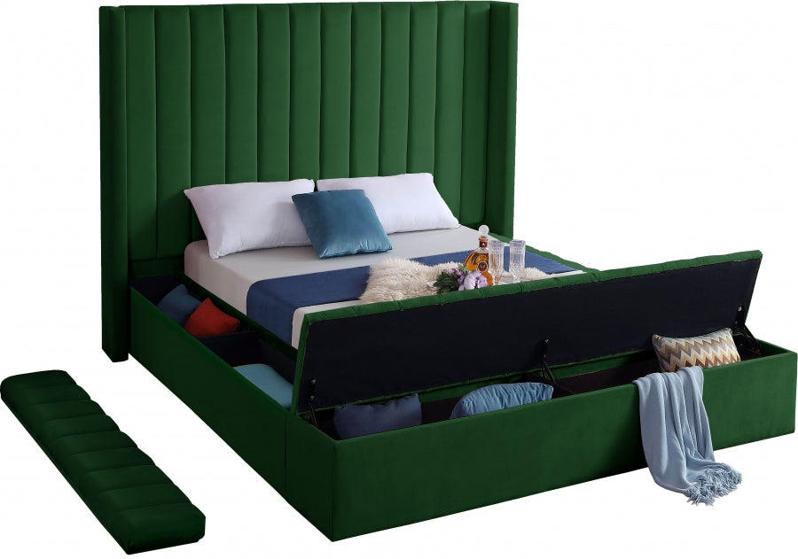 Make a bold statement in your bedroom with this stunning Kiki black velvet full bed. Its black velvet design with channel tufting gives it a chic, textured appearance that’s both comfortable and dramatic. This full size bed features storage rails along its full slats frame, making it the perfect solution for individuals in limited sleeping spaces. Its width of 85.5 inches, depth of 94 inches, and height of 65 inches offers ample room to sleep without being cramped.
