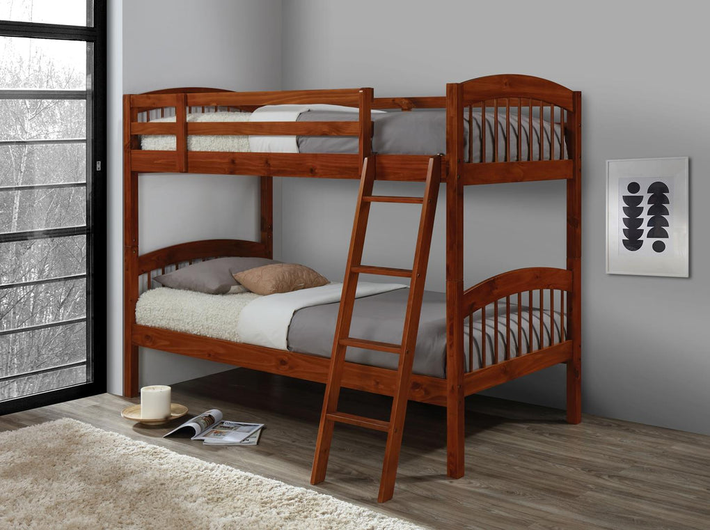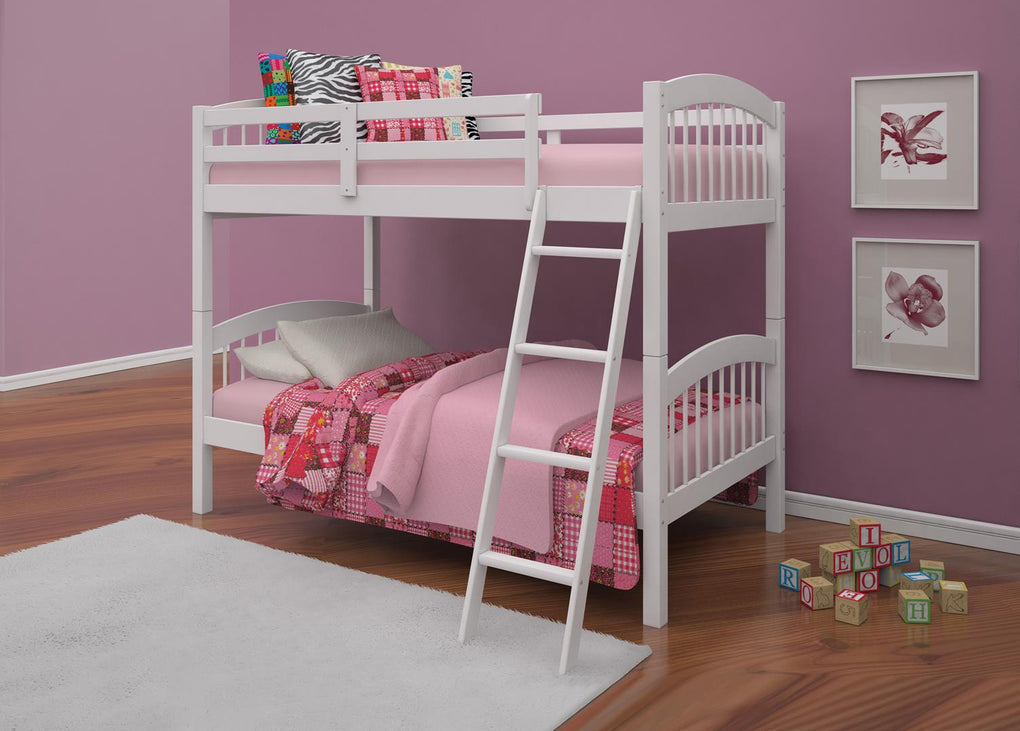 The Marville collection simple and beautiful design will give a stylish touch to your kids bedroom. This design is the best choice for when you need extra space. This bunk can easily be transformed into two separated beds or stackable beds when needed. A front ladder is provided for easy access to the top bed.