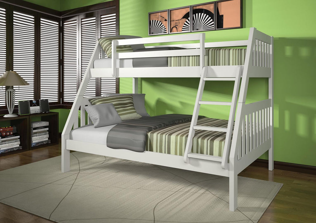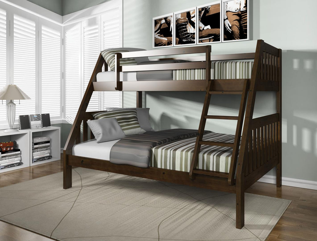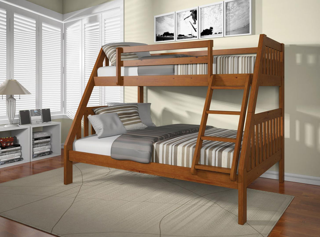 The Ryo twin over full bunk bed is a great choice for youth bedroom. The bunk bed is constructed with pine wood which is built for durability, safety and great value. An front ladder is provided for easy access. This bunk bed accommodates standard size twin and full mattresses.