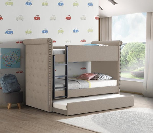 Romana II Bunk Bed & Trundle (Twin/Twin), Beige Fabric