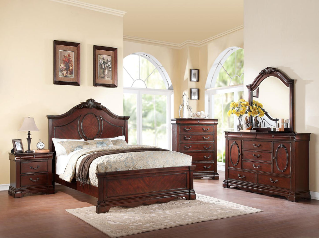 Dark Cherry finish in a rich brown tone, the Estrella collection of bedroom essentials is ready to set the tone for sophistication in your home. This collection reflects carving details and traditional features to complement any classically-styled home. Warm your master suite decor with distinction by bringing home the Estrella collection.