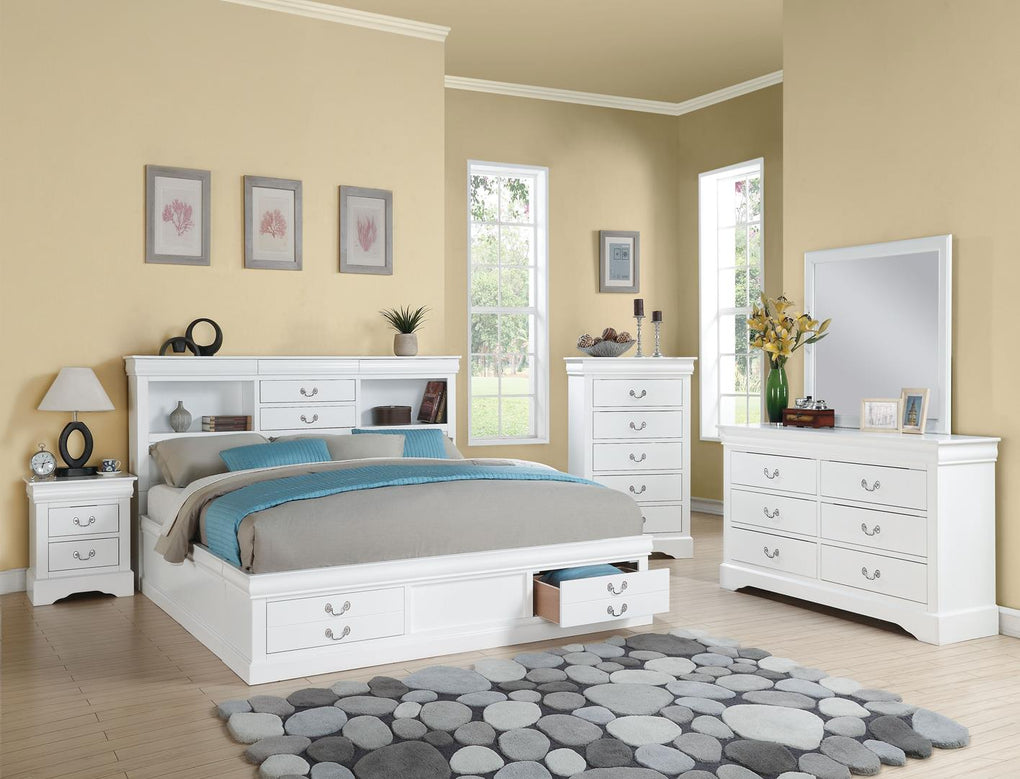 Louis Philippe III California King/Eastern King/Queen Bed w/Storage, White