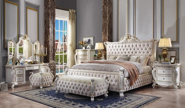 Picardy California King , Eastern King, Queen Bed, Fabric & Antique Pearl