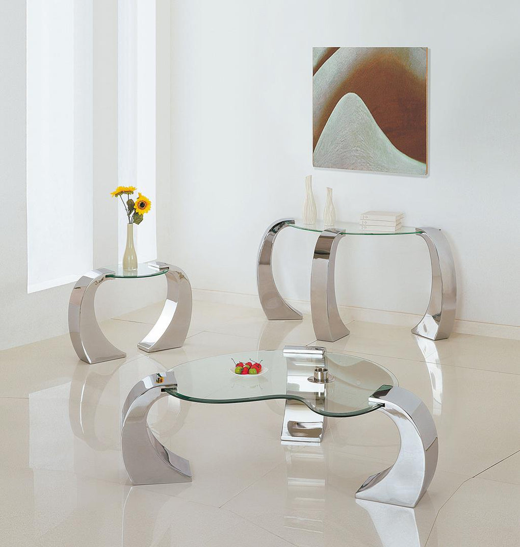The Metro Coffee table is great for photographs, flowers and other decorative pieces and will make your living room decor come alive. The piece features three metal legs finished in chrome plated and clear beveled glass top.