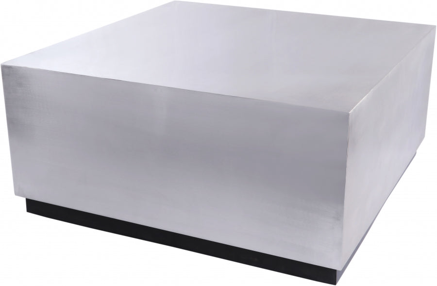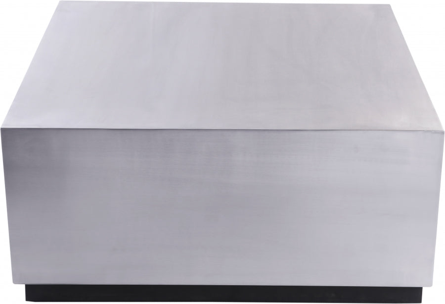 Make a bold statement inside your home with this eye-catching Valle Coffee table from Meridian Furniture. Featuring a solid square design made crafted out of brushed chrome metal with a matte black base, this contemporary table offers sturdiness, durability, and style. Its chrome metal and matte black colors complement each other and add just a touch of sophistication to your existing home decor. This table is versatile so it can be used in any room in your living space.