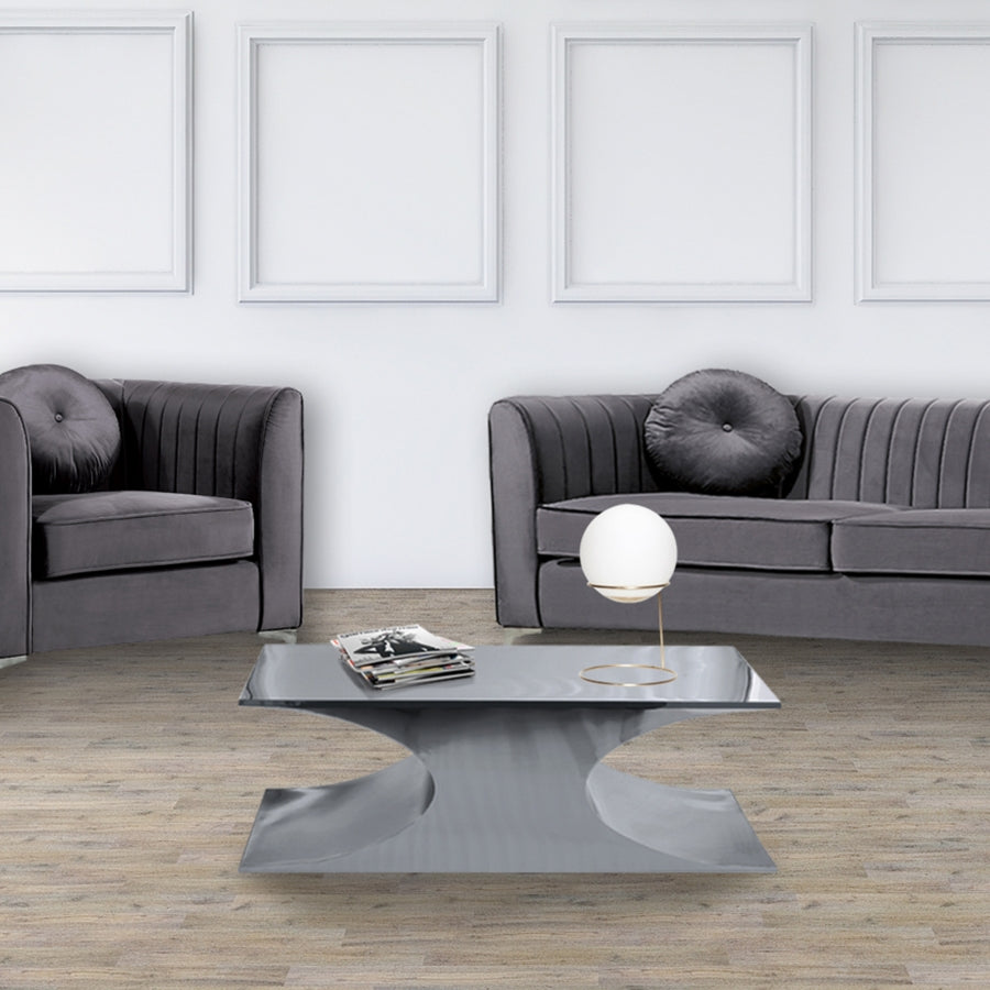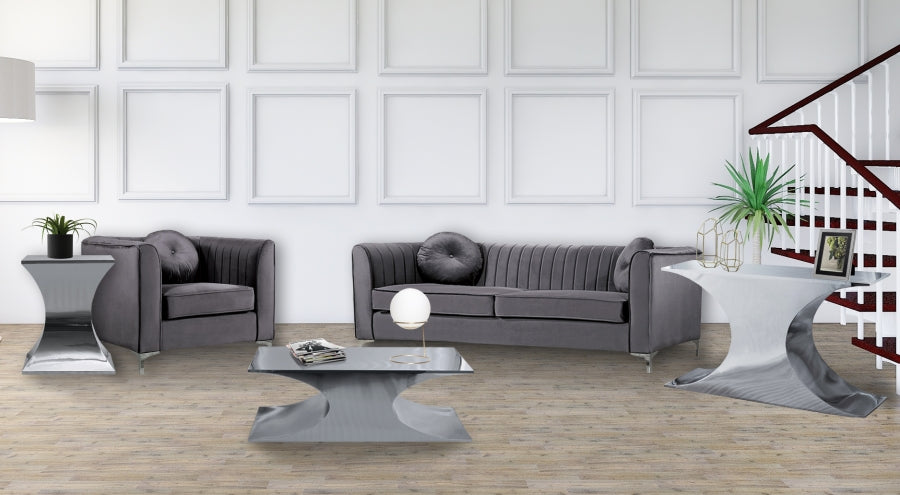 Pull your room together with the addition of this Russo End table from Meridian Furniture. This chrome metal table features a contemporary design that is sure to catch the eyes of all who behold it, making it a great centerpiece or accent piece for your modern living space. Place this table in your living room, family room, den, or bedroom to create a sophisticated and stylish look your guests will be talking about for years to come.