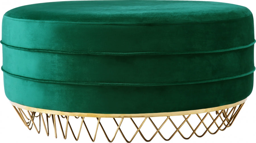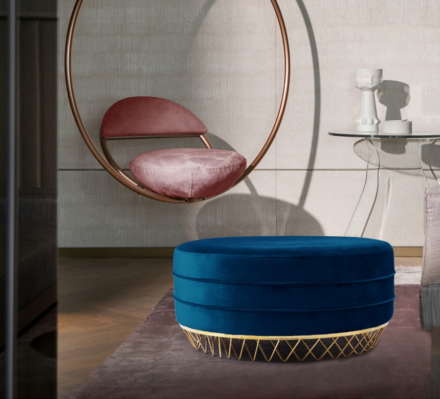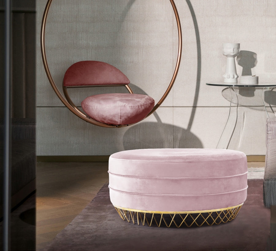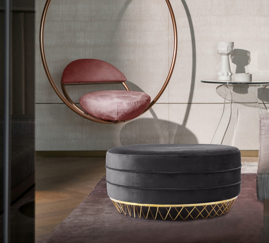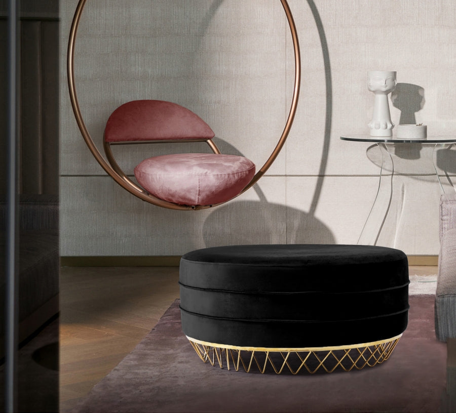 Draw all eyes to the center of your living room with this stunning black velvet Revolve ottoman/coffee table. Featuring a unique design that both doubles as a place to sit and a place to display magazines, books, or rest your feet on after a long day, this contemporary piece is the perfect addition to your modern home decor. With a width and depth both of 36 inches and a height of 17 inches, this plush velvet ottoman/coffee table sits regally upon a gold stainless steel base, creating an elegant impression your guests are sure to notice.