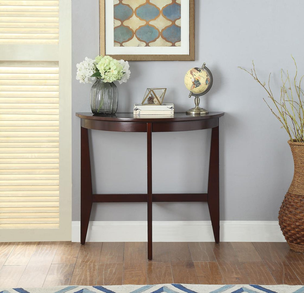 Give a touch of transitional modish scheme to your home with this Quedell console table. With its simple design, you can place it beside your entry doorway to add a welcoming sensation. Featuring a glass top & wooden legs this piece furthermore become a simple solution for storage. Bring home this console table to amaze your guests. With its elegant espresso & clear glass finish, it will certainly complement any home Decor.