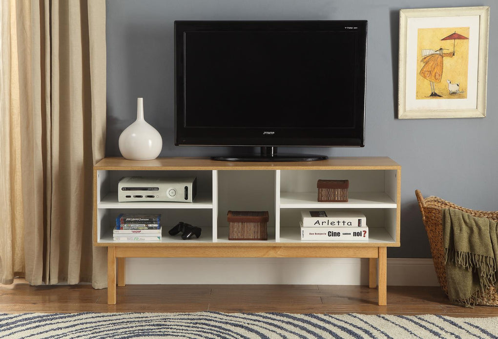 The gorgeous Drivia Rectangular console table demonstrates style with a contemporary design. This table features 5 Open Compartments, wooden shelves in white finish & wooden square-straight legs in natural finish to support. Add this console table to any room in your home and you are sure to turn heads with its elegant style.