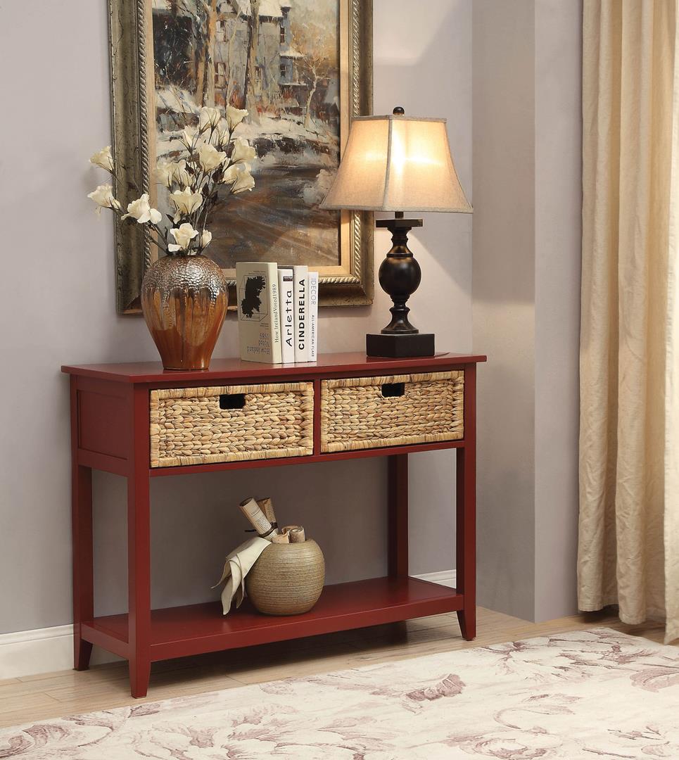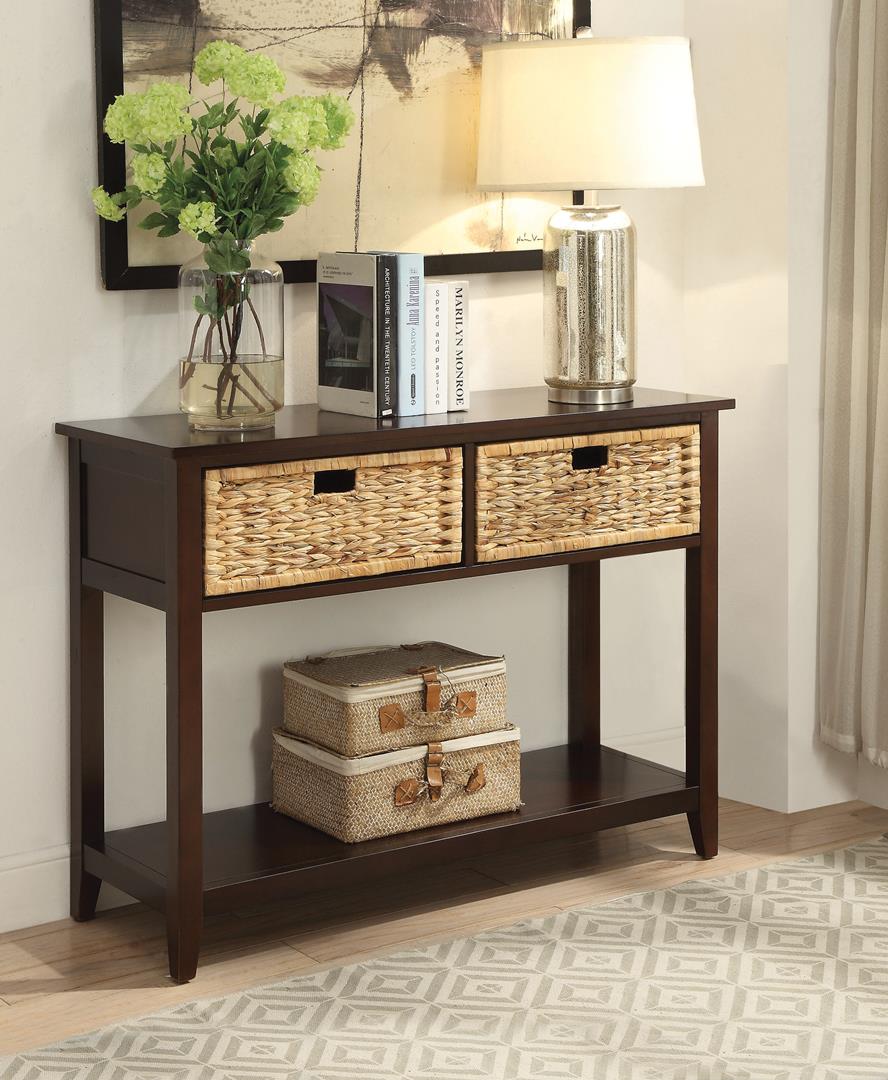 A stylish look for any room in your home, the Flavius console is an easy addition. The console has a nice, neutral finish and comes complete with two baskets like drawers. The drawers help to tame the clutter, while the bottom shelf helps provide additional storage and decor solutions. Some assembly required.
