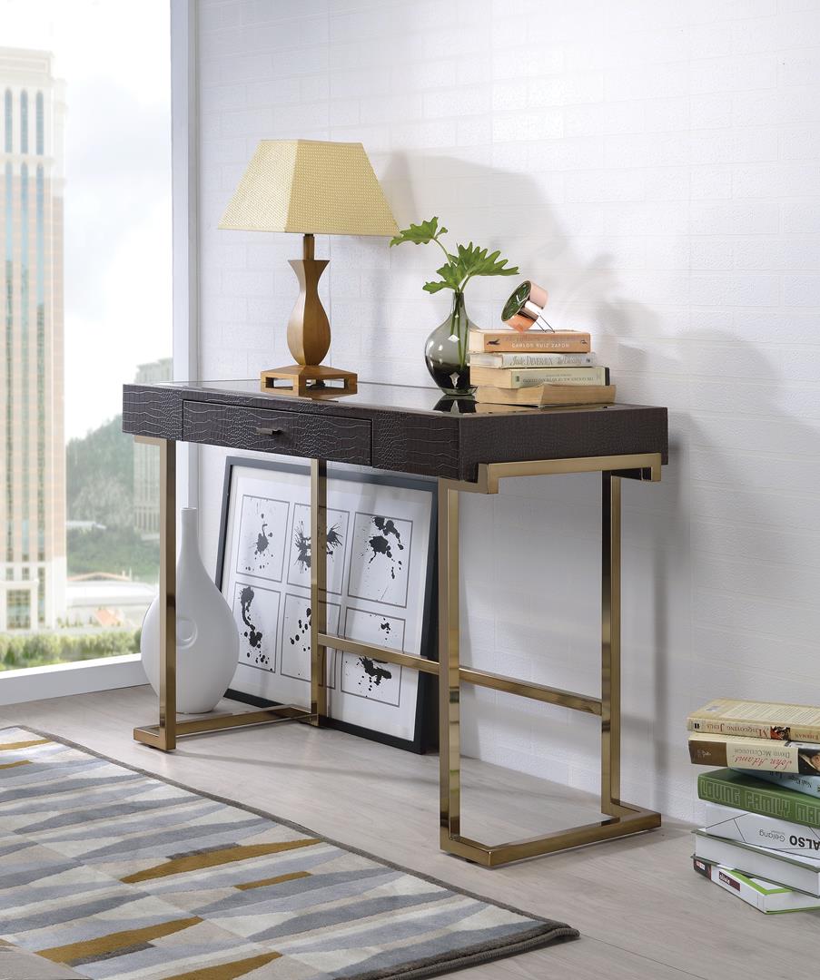 Boice Desk, Espresso PU & Champagne