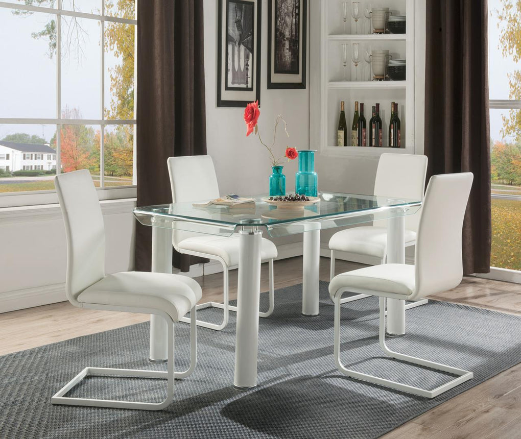 The Gordie collection chairs offer versatility and sleek design that enhance any dining room. These classic chairs feature armless, white padded seat and back, footrest support and C metal shape base in white power coating. Upgrade your home with these counter height chairs. Matching table is available.
