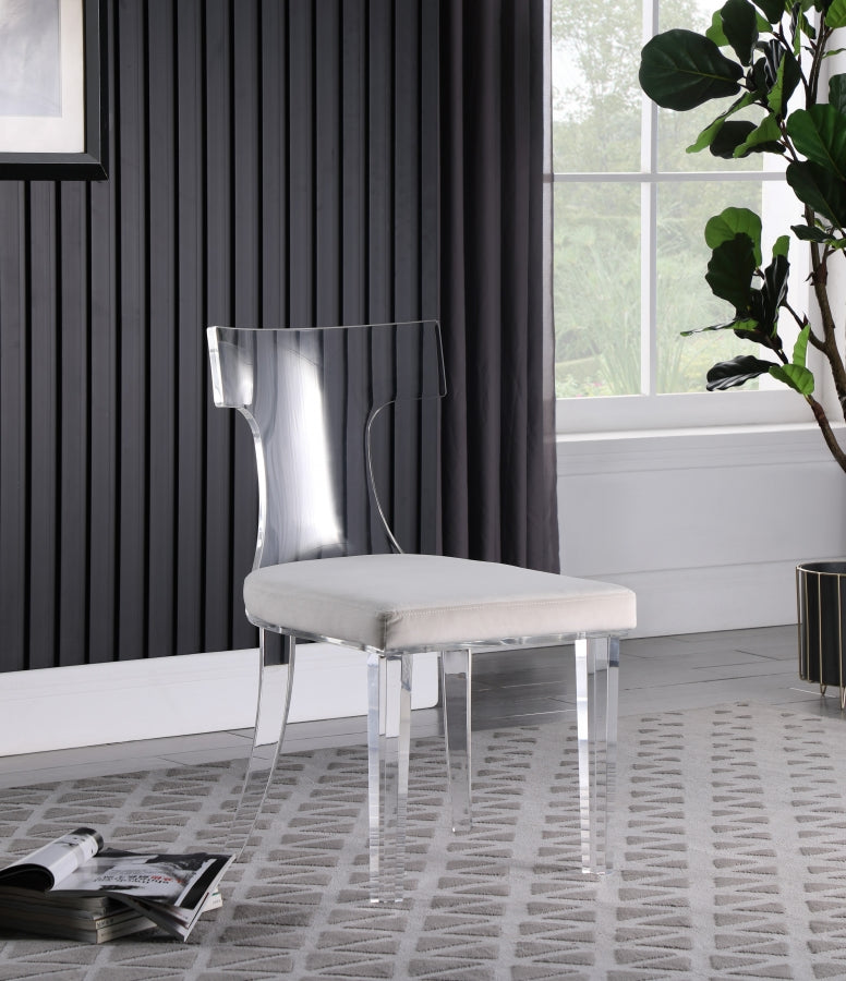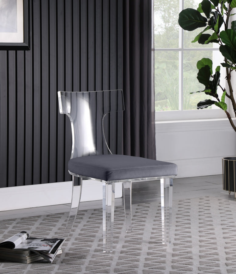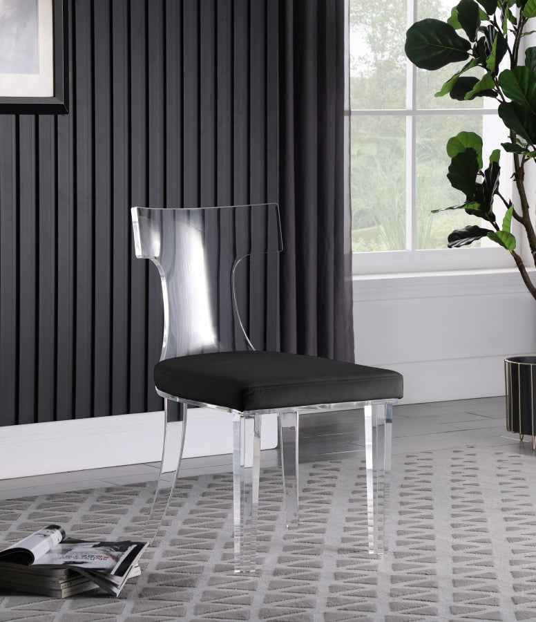 Elegant and eye-catching, the stunning black velvet Lucid Dining Chair from Meridian Furniture is the perfect addition to any space.