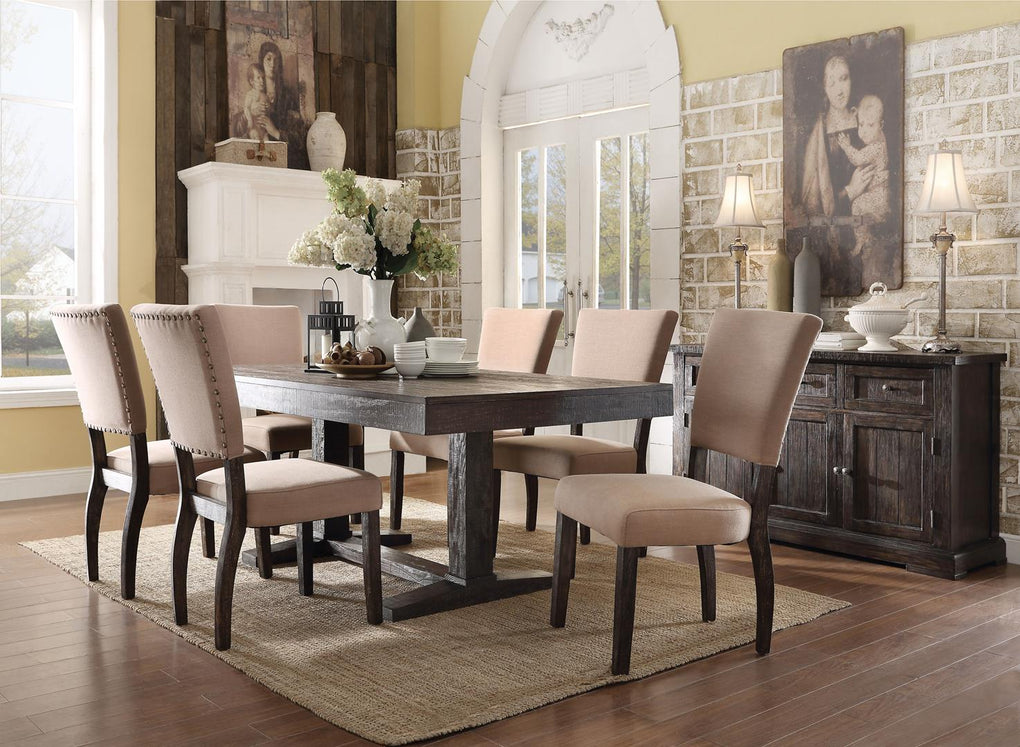 Eliana Side Chair (Set-2), Beige Linen & Salvage Dark Oak
