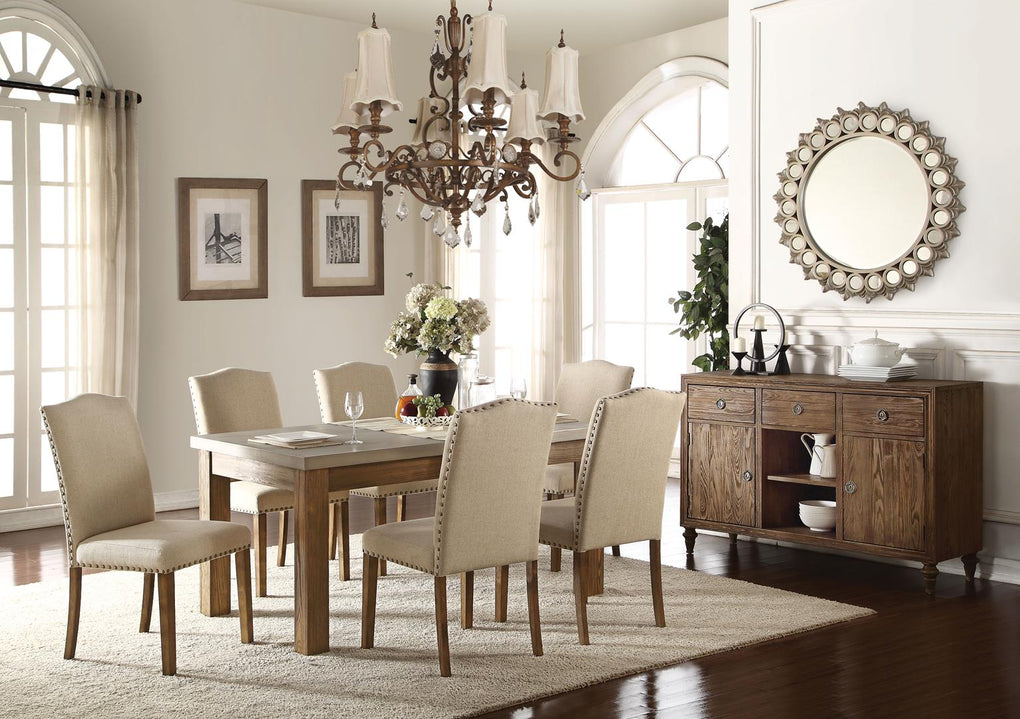 Parker Side Chair (Set-2), Khaki Linen & Salvage Oak