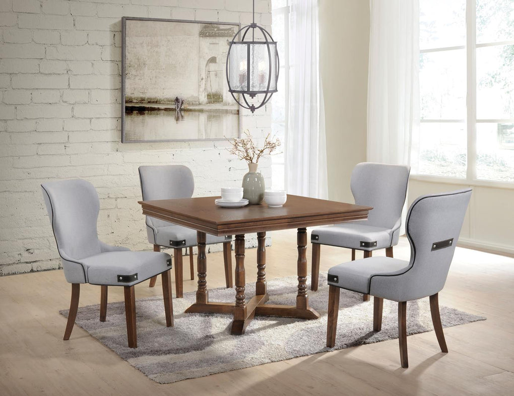 Architectural in design, our Wilfried collection will be a perfect set to be placed in your dining room. The table features wooden pedestal base with 4 turned supports and the wingback armless chairs with wooden tapered leg make this piece looks more classic and great. This is the one that you can't miss.