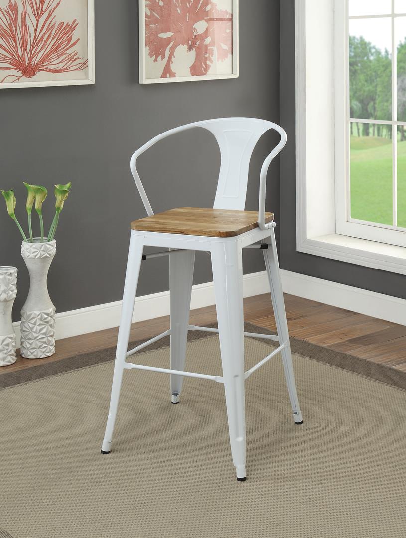 The Jakia II bar chair is perfect for a casual to a contemporary dining space. It is crafted in selected elm wood in natural finish and metal frame in glossy white finish. While its curved, vertical height backrest provides firm spinal support, ensuring you are at a comfortable height. Not only functionality, but this collection also gives a unique look and blend beautifully to any dining room.