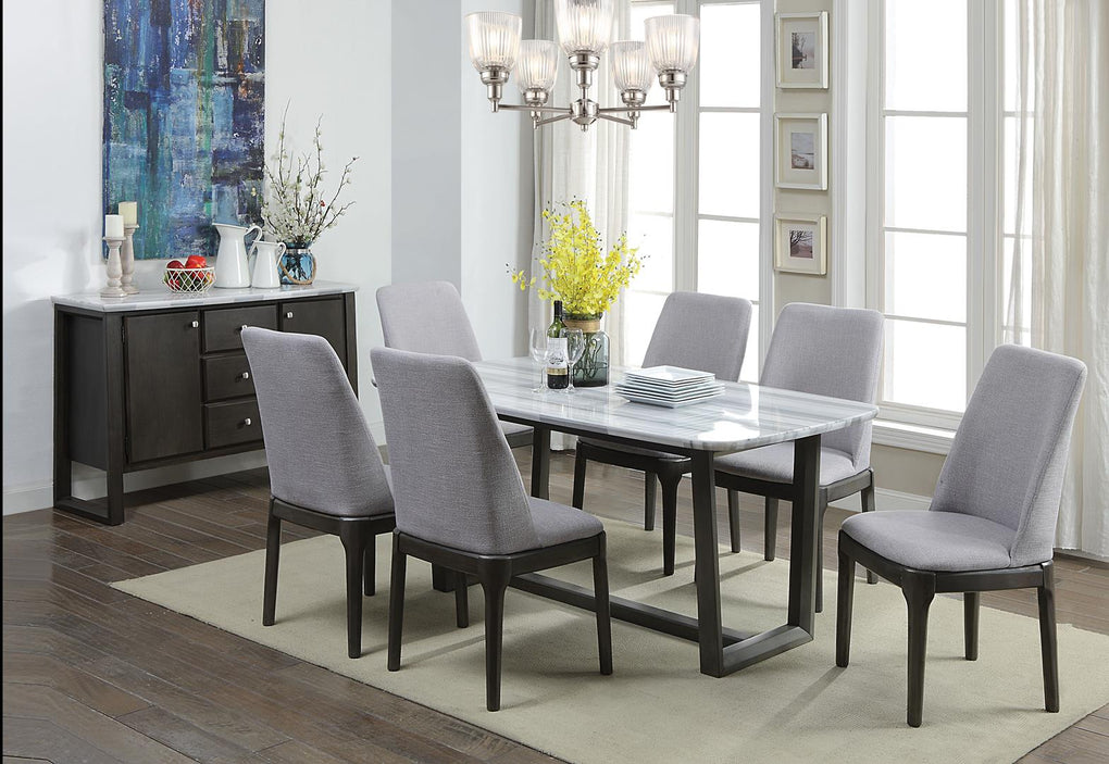 Attract attention to your dining room with the Madan side chair. Featuring a stunning light gray upholstery and walnut finish wood legs, this chair is both durable and stylish, complementing your contemporary home decor theme while guaranteeing to withstand the wear and tear of daily use for years to come. Warmed with a walnut finish this sturdy armless chair has beautifully tapered wood legs. A striking mix of natural materials this unique chair will provide comfortable seating for all of your guests. Sold in sets of two.
