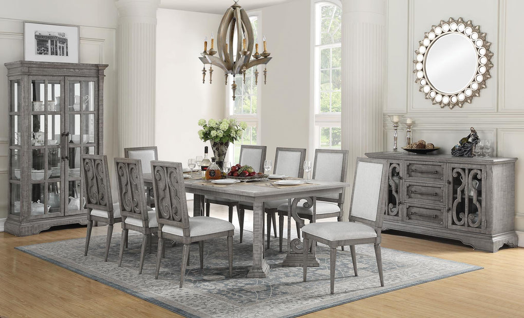 Combining classic and contemporary elements, the bold curves of the Artesia dining room collection provide both an elegant contrast and a unique look to any dining area. The beautiful armless chairs are crafted with solid wood in matching finish with decorative scrolled motifs. This stunning collection will inspire a timeless look that will endure for years to come.