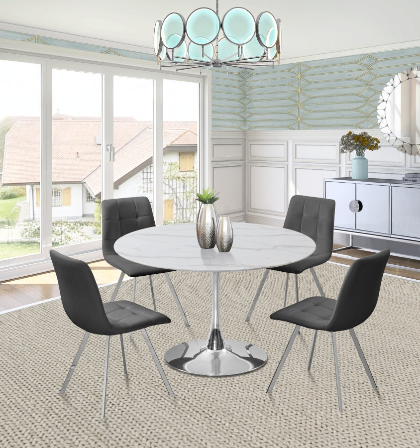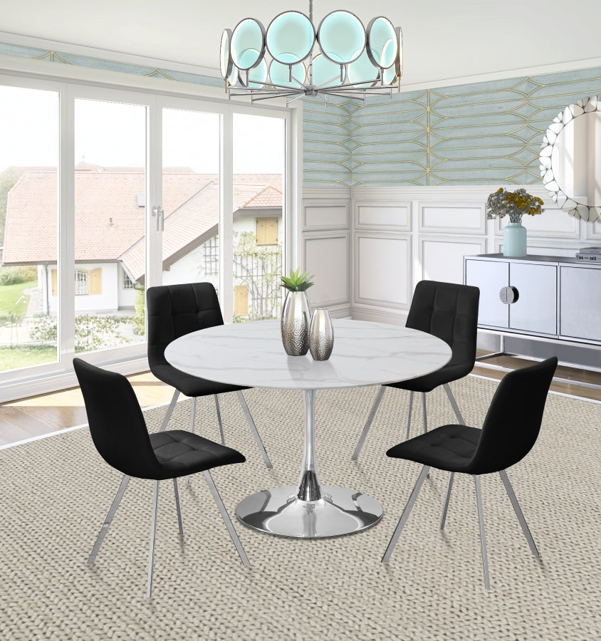 Elegant and eye-catching, the stunning black velvet Annie Dining Chair from Meridian Furniture is the perfect addition to any space.