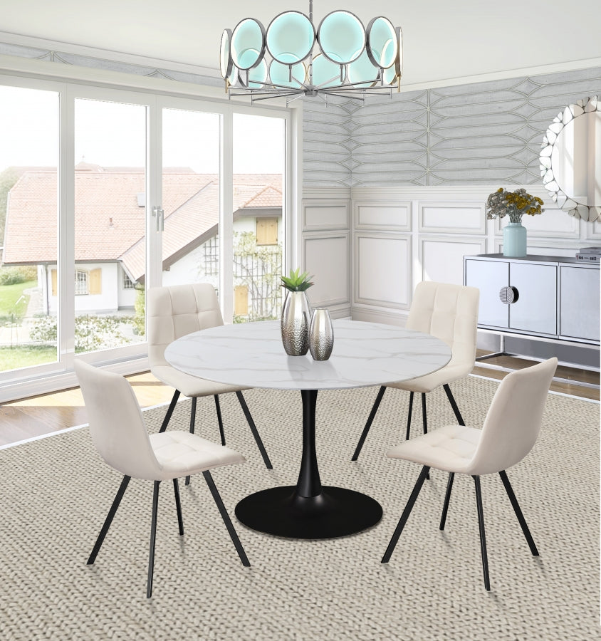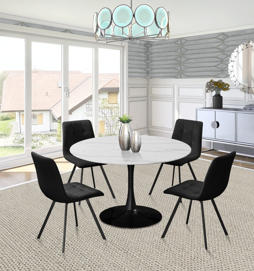 Elegant and eye-catching, the stunning black velvet Annie Dining Chair from Meridian Furniture is the perfect addition to any space.